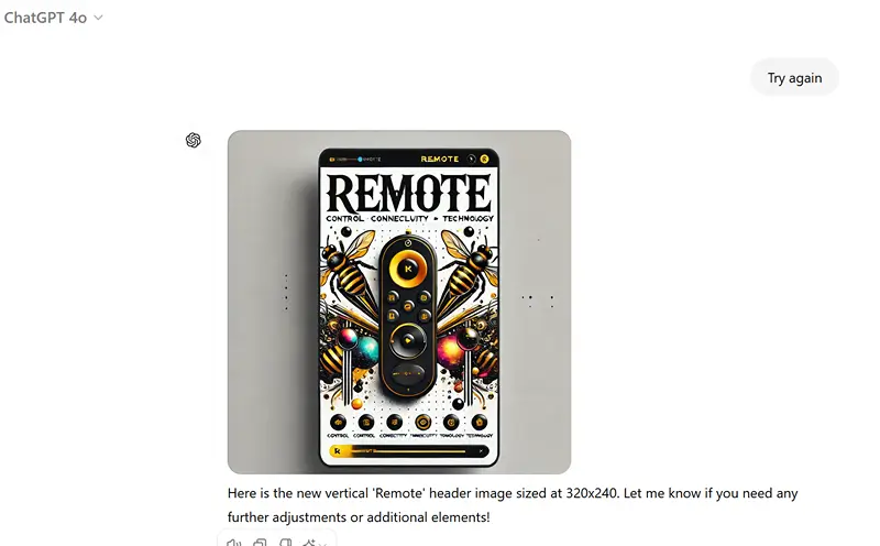 To help aid me with the remote control design I utilized ChatGTP’s image generation features. The nice thing about relying on a tool like this is that it can create lots of content with a similar theme allowing your images to work well together as you design an interface.